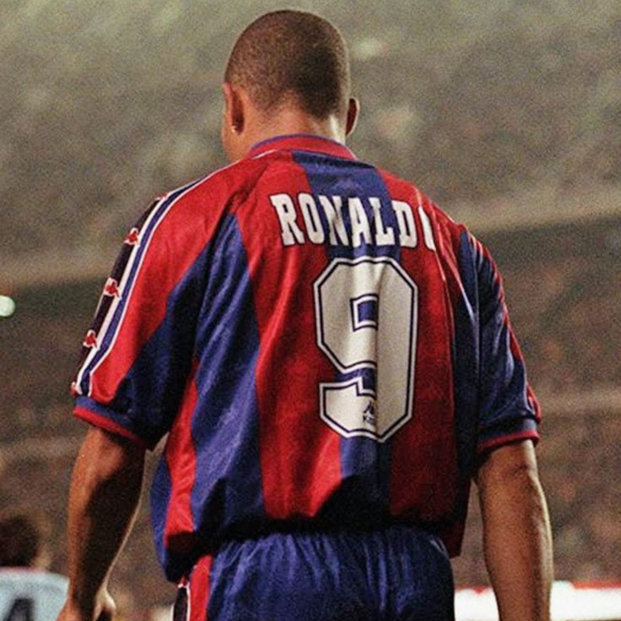 قميص تاريخي من نادي برشلونة الإسباني، ارتداه النجم البرازيلي رونالدو نازاريو خلال موسمه الأسطوري 1996/1997، حيث سجل 47 هدفًا في جميع البطولات، وقدم أداءً مذهلاً جعله من أعظم المهاجمين في تاريخ كرة القدم.